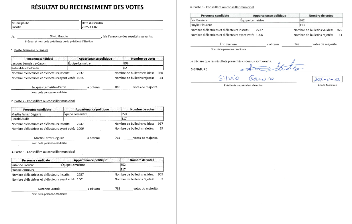 Le greffier de la municipalité agit en tant que président d’élection. Cette personne a la responsabilité